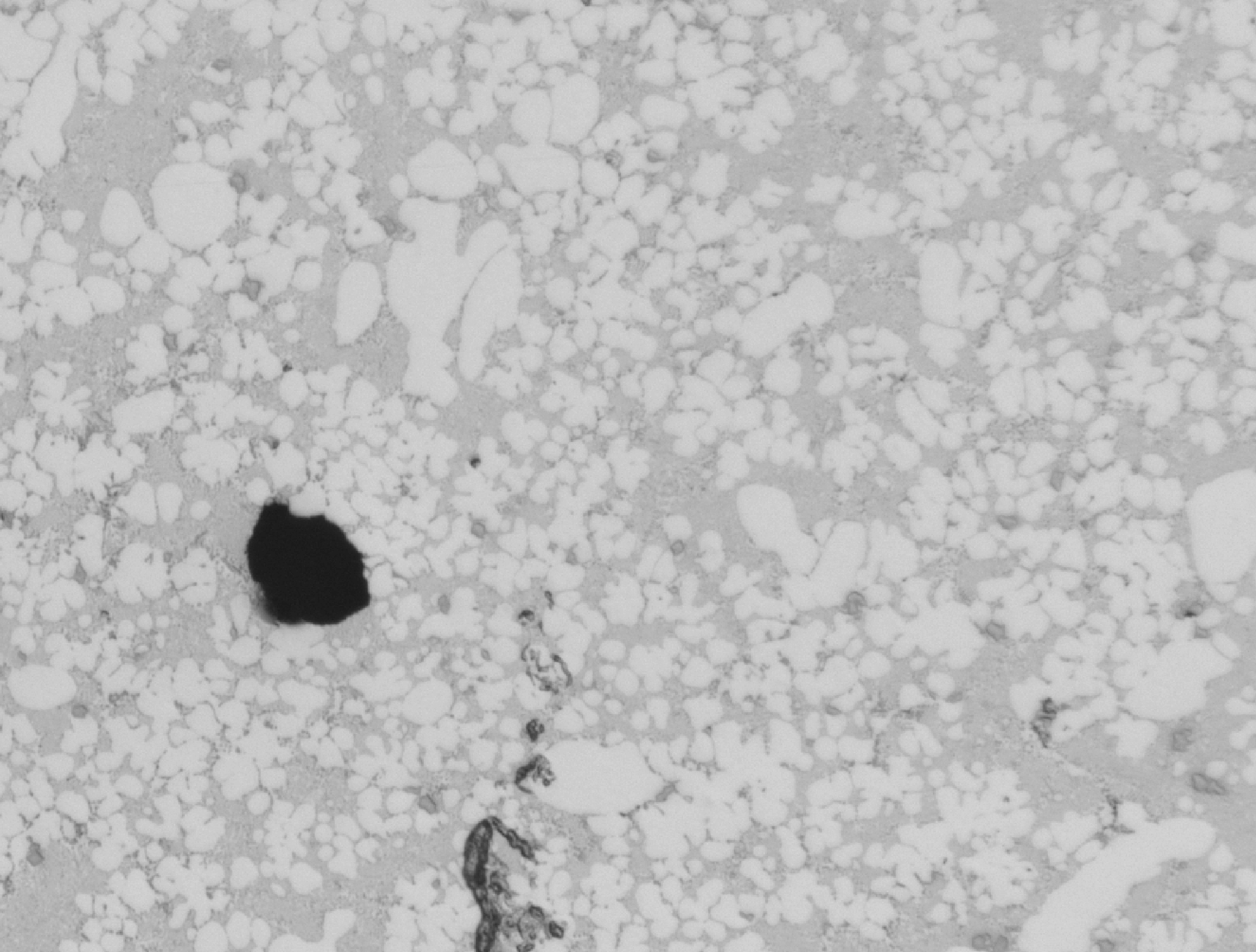 Mit der Polaritätsmessung lässt sich feststellen, ob das Material die Anforderungen in Bezug auf den Porenbereich und den Porositätsprozentsatz erfüllt. Mit Clemex Studio können Sie den Algorithmus schnell für die Erkennung von Poren trainieren und Vision PE berechnet die Ergebnisse, z. B. den Prozentsatz der Porosität, sodass Sie Ihren Gussprozess zur Qualitätssicherung charakterisieren können.