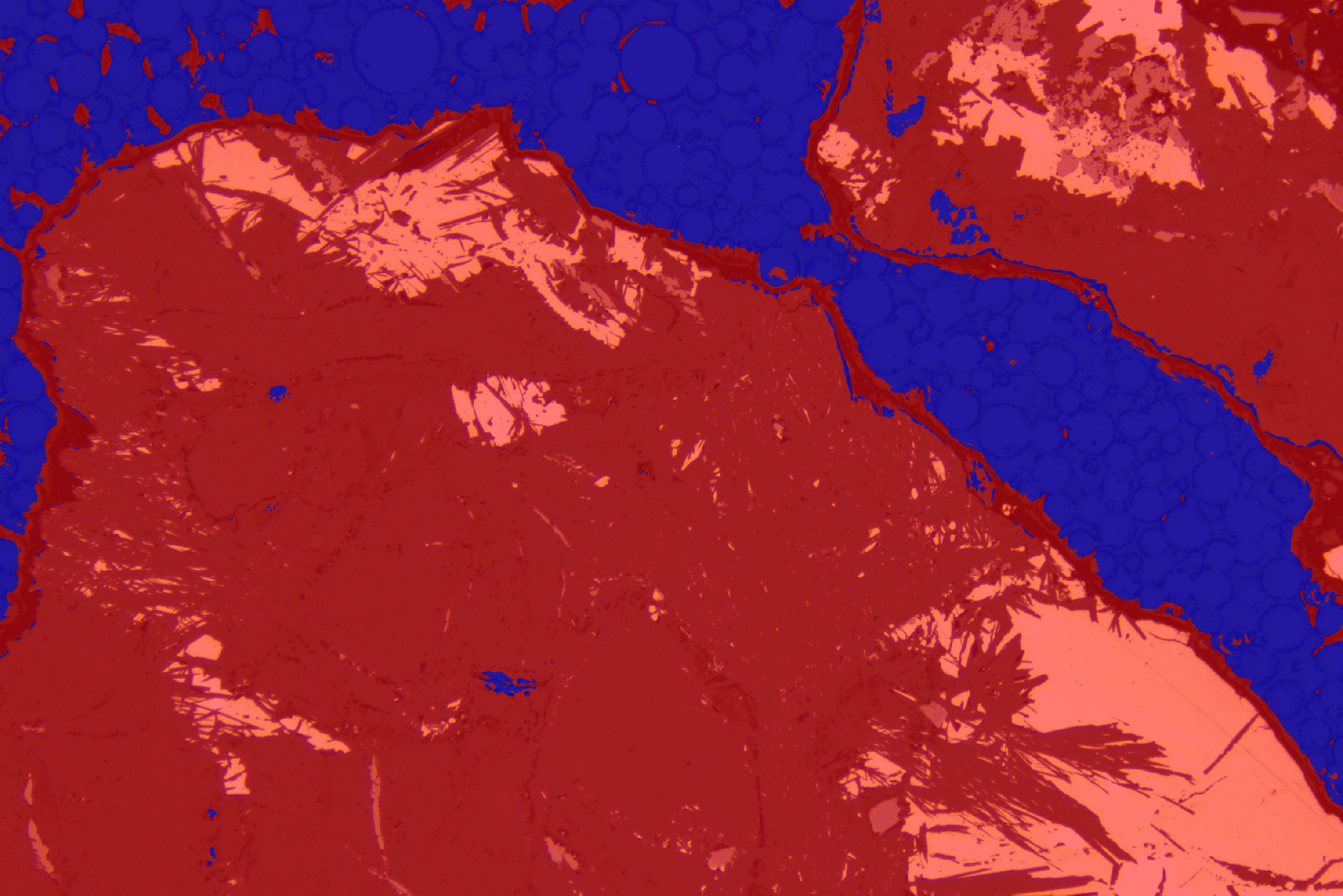 Mineralpartikel im Harz. Hier bestand die Herausforderung darin, den Hintergrund der Mineralpartikel-Cluster zu segmentieren. Bildquelle: Benjamin De Castro.