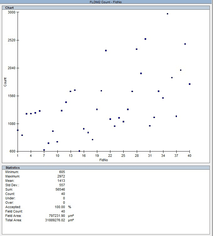 Abb. 7  Ca. 1.400 Partikel pro Feld mit 39% Standardabweichung des Zählergebnisses.