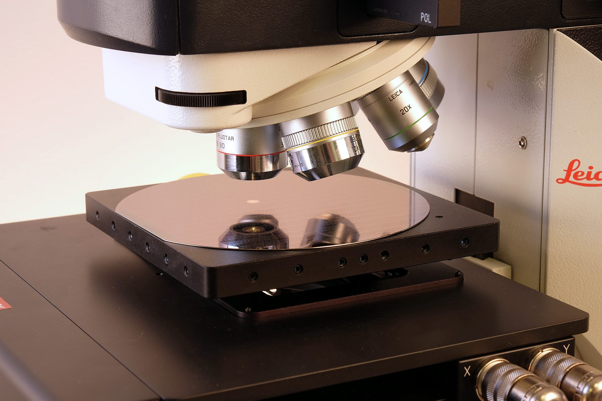 Zuerst wird der Wafer korrekt unter der Linse positioniert. Dazu wird ein Referenzpunkt verwendet, an dem der gesamte Wafer korrekt ausgerichtet wird. Danach wird jedes Die an den Außenseiten oder Mittelpunkten des Wafers korrekt analysiert.