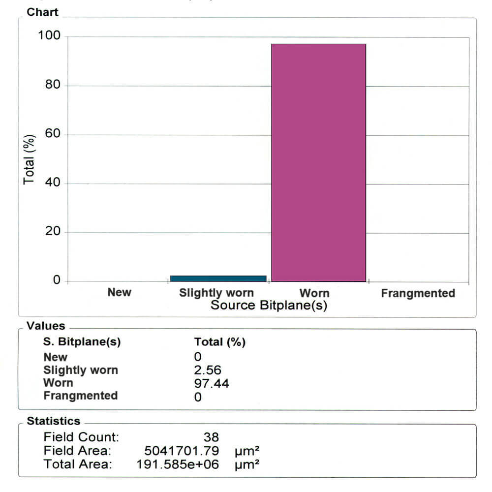 Abbildung 3. Eine Kirsch-Transformation des Originalbilds ermöglicht die Erkennung der Verschleißstruktur und Verknüpfung mit der grünen Bitebene.