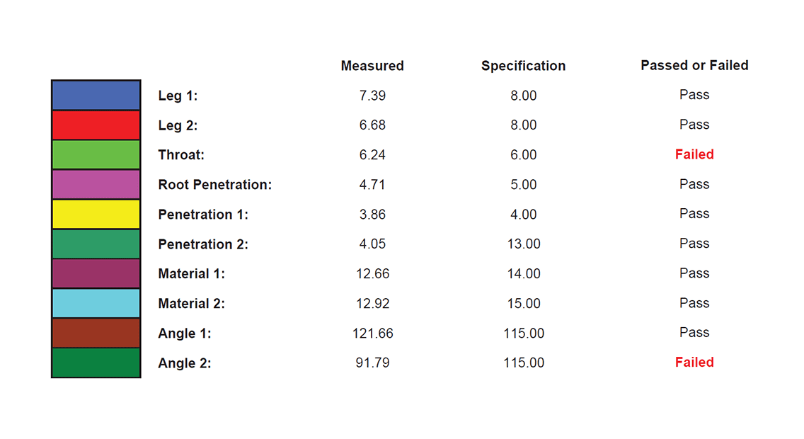 Bei dieser Anwendungsbeschreibung wurde Clemex Captiva verwendet, um den Winkel und die Länge eines bestimmten Bereichs in der Abbildung einer Kehlschweißnaht zu messen.