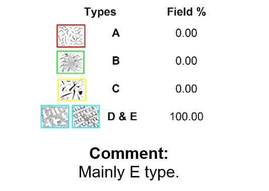 Abbildungen von grauem Gusseisen mit unterschiedlichen Spangrößen wurden zur Bildanalyse gemäß ASTM A247 und ISO 945 eingeschickt.