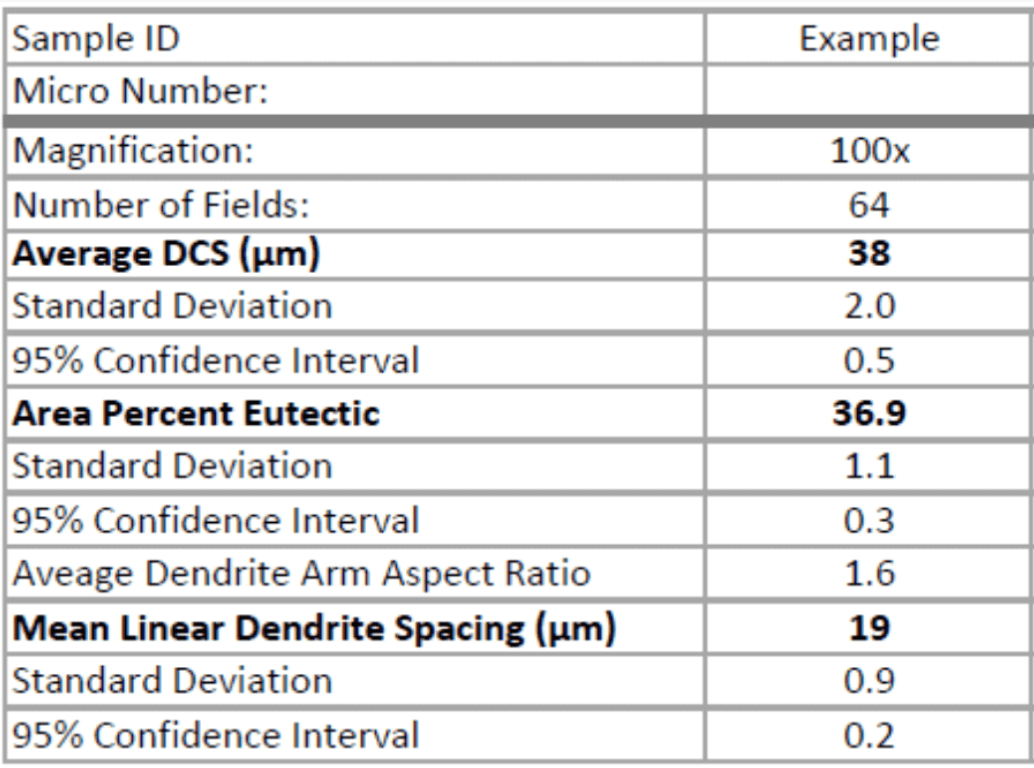 Die reproduzierbare Erkennung und Messung des SDAS wurde mit der Bildanalysesoftware Clemex Vision durchgeführt, die mit einem NIST-rückführbaren Tischmikrometer kalibriert wurde.