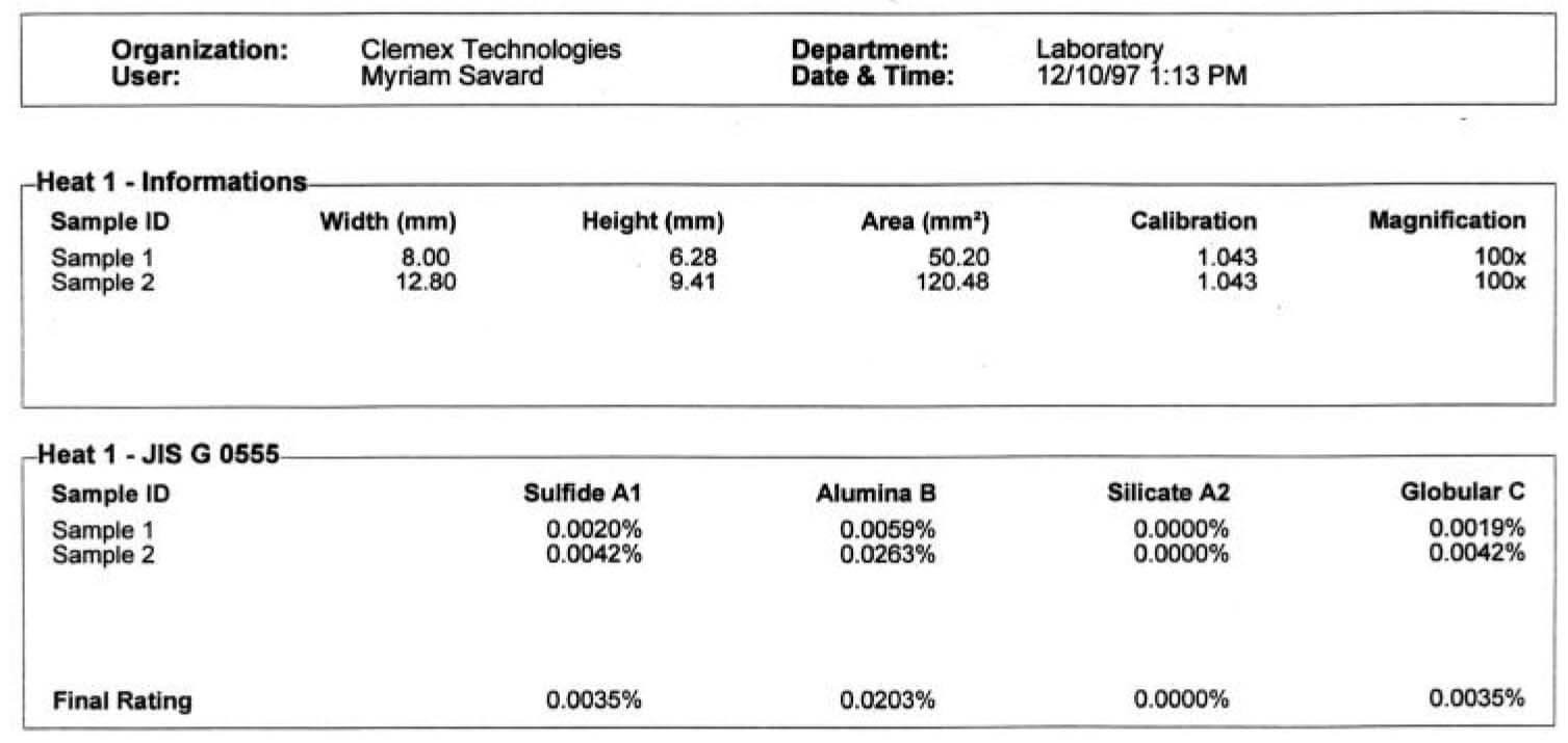 Berichte zu Bestimmung von Einschlüssen für alle erforderlichen Normen werden automatisch erstellt und unten angezeigt. Es werden weitere Normen und Varianten unterstützt. Klicken Sie unten auf "PDF herunterladen", um den gesamten Bericht zu lesen. Kontaktieren Sie uns für weitere Informationen.
