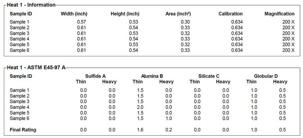Six échantillons d’acier maraging préparés sont soumis à l’analyse de la mesure de la pollution inclusionnaire à l’aide de Clemex CIR.