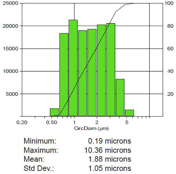 Image 1. Partie de l’image d’origine montrant la plus grande particule trouvée dans l’échantillon 6 comme 13,84 microns (0,1691 micron/pixel)