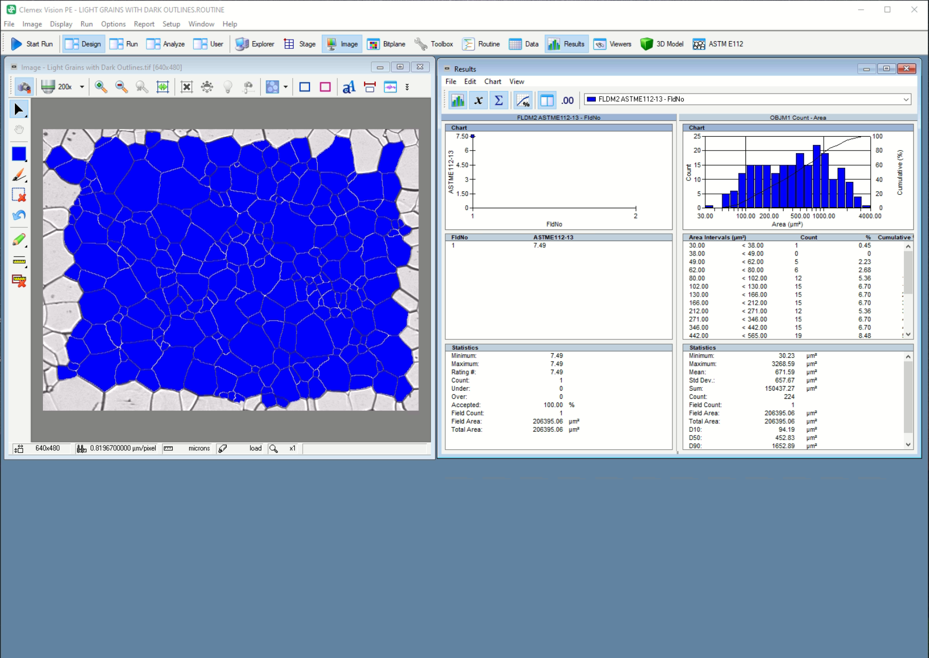 Figure 2. Mesure dans Clemex Vision à l’aide d’un plugiciel Clemex Studio