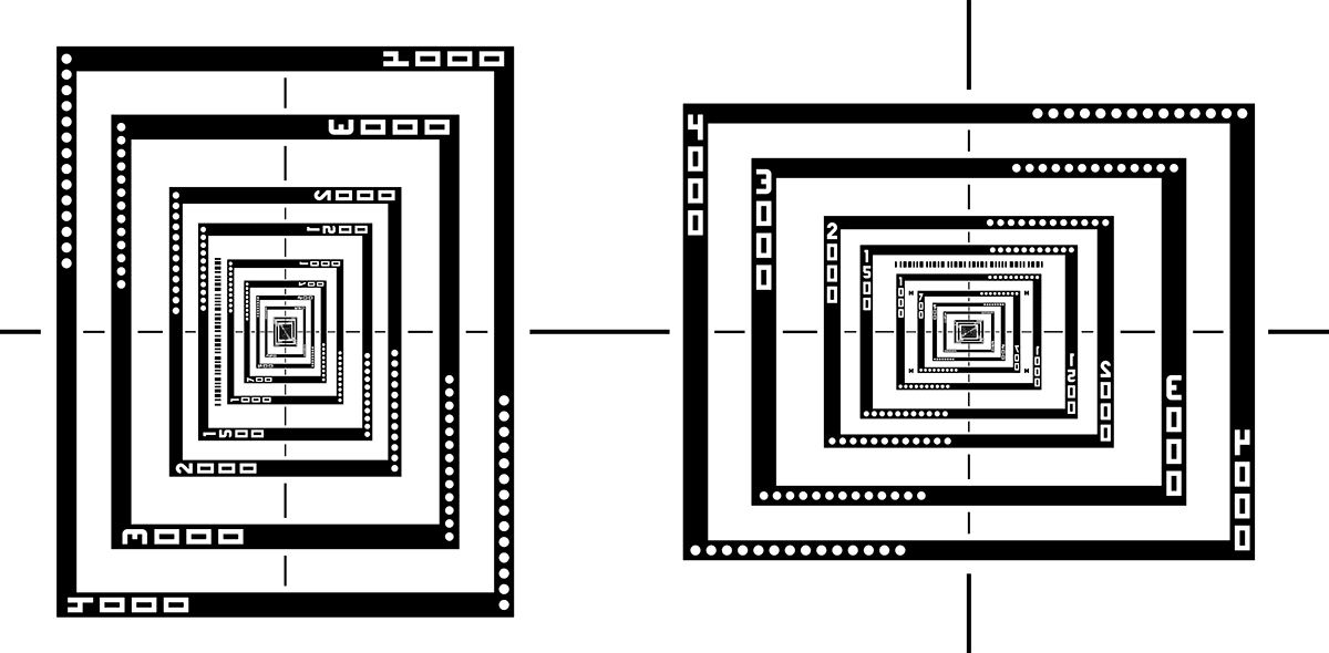 Rectangles imbriqués de tailles traçables NIST utilisés pendant le calibrage pour la position horizontale ou verticale de la règle